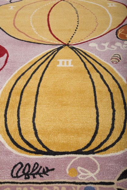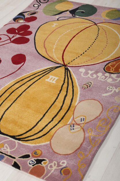 Handtuftad ullmatta i finaste New Zealand ull och bambusilke i ett av Hilma Af Klints berömda mönster. Produktion Bargi, Malmö. Ordinarie pris 7458:-